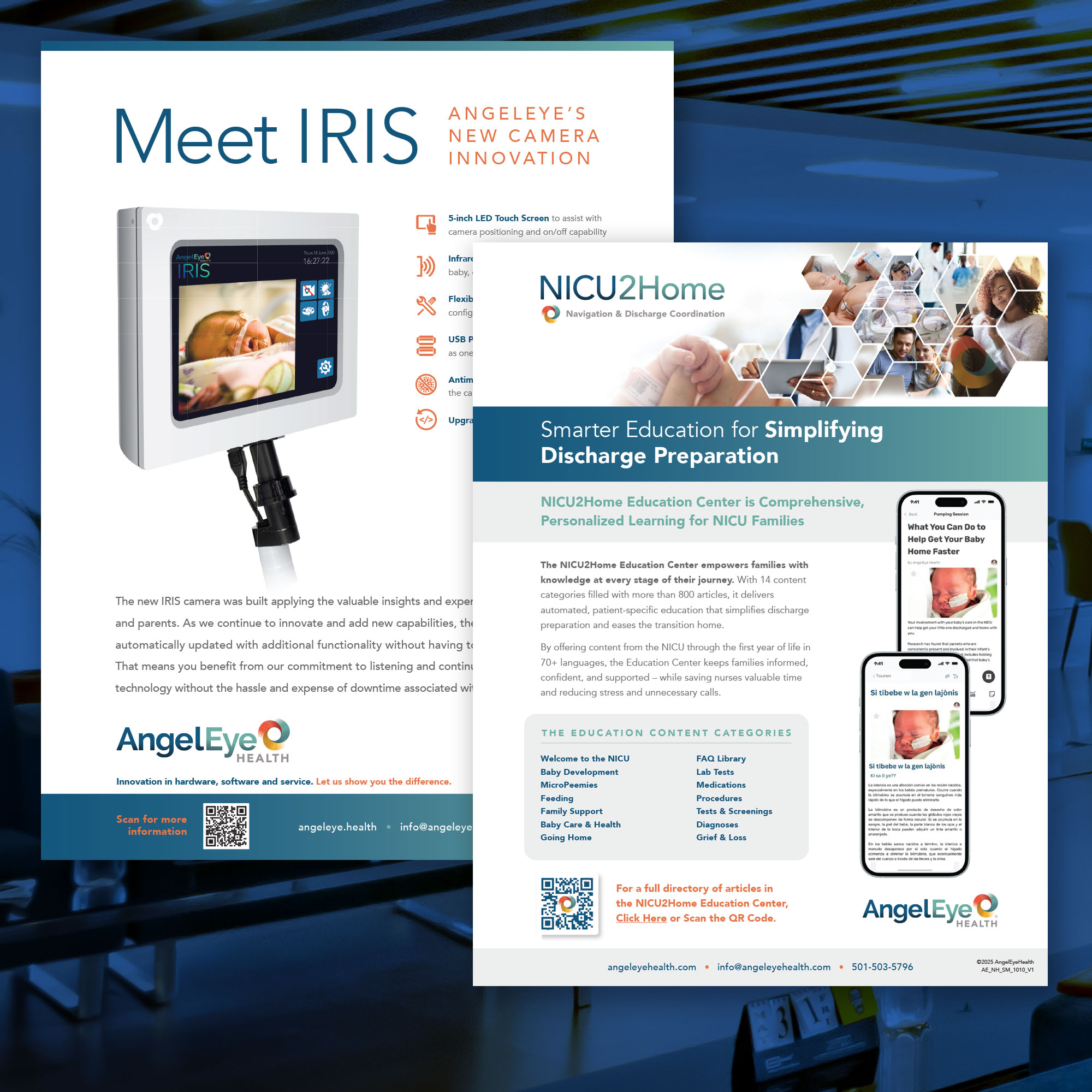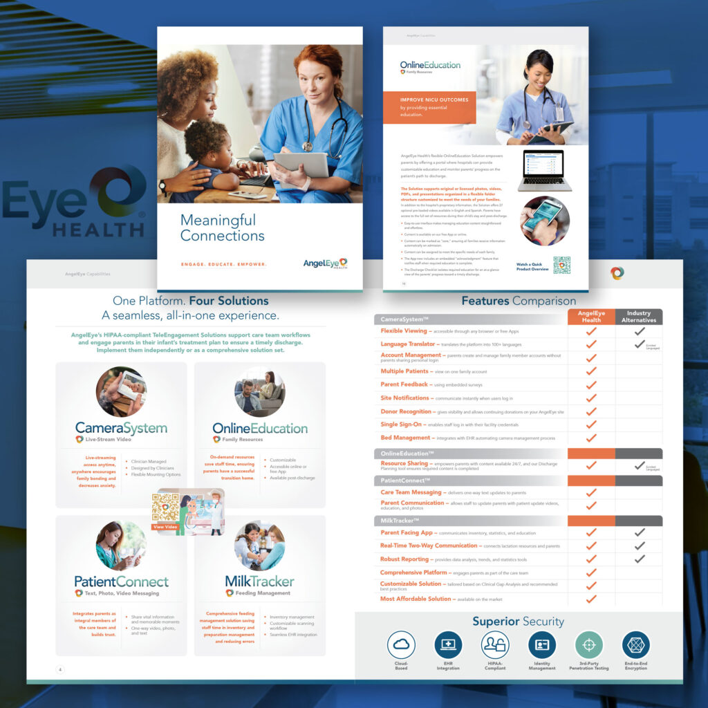AngelEye offers a comprehensive healthcare suite designed to measurably reduce length of stay, minimize errors, and optimize resource allocation primarily for NICUs. Open Sky Ideas has teamed with them to design their corporate collateral and establish their visual brand through hundreds of projects. – maintaining a strong and consistent identity to corporate supporters, hospitals and staff, and patients’ families.