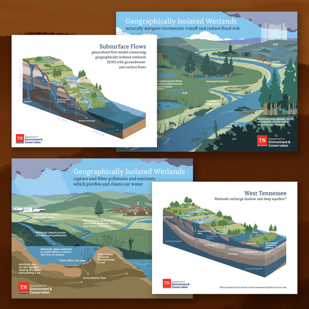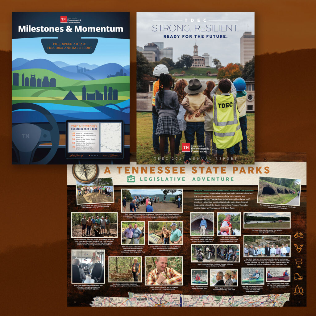 Starting in about 5th grade, my passion was to become a park ranger. But I made the decision toward art and graphic design in college. So, while I can’t spend my working days on the trail, I can help promote and support those that do. Open Sky Ideas has been working with the Tennessee Department of Environment and Conservation for years – specializing in department collateral support, poster and technical illustrations, and since 2016 – their Annual Report
