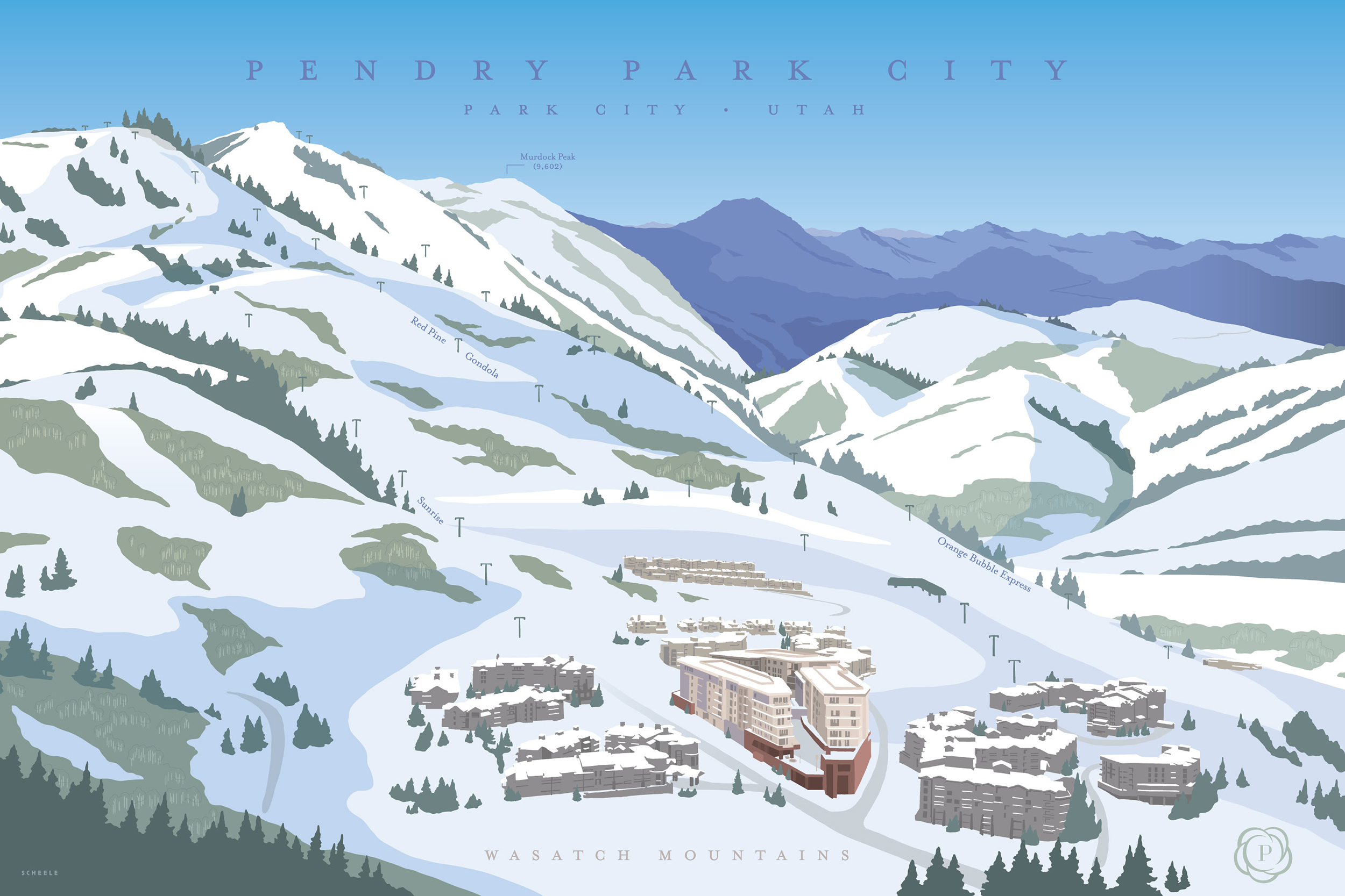 Using your reference property photos, specific structure photos and satellite images, I first create a large pencil drawing and then recreate that digitally for color and sizing adjustments. From there, it’s value and shadow finishing and typography and brand element design for collateral consistency.